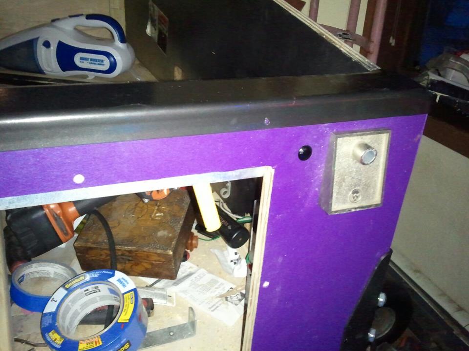 Still need to bondo the cabinet, as well as the splinters created when I cut the back door out... and then repaint. Again.