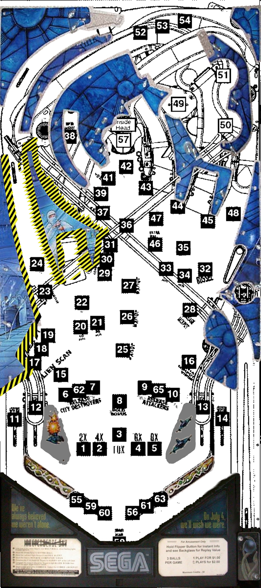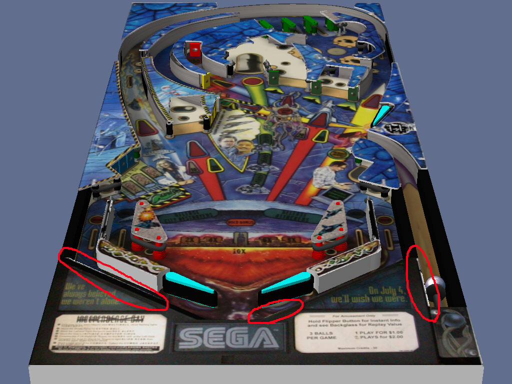 The object pastes in exactly in the same position. Change the wall top height to 55, bottom height to 50. You can now turn off the display in editor for the object and switch the table image over to the actual playfield image:
