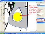 Add a wall object in that area. Set the top height to 60 and the bottom height to 58. Shape it to match the orange. Here’s how it should look when you are done. Note – make sure a light object of radius 25 will fit inside the “hole” otherwise your ball won’t fall through: